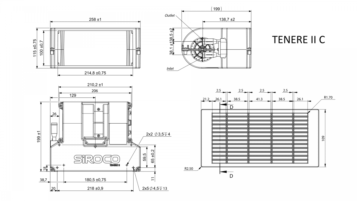 Nominal air flow: 250 m3/h