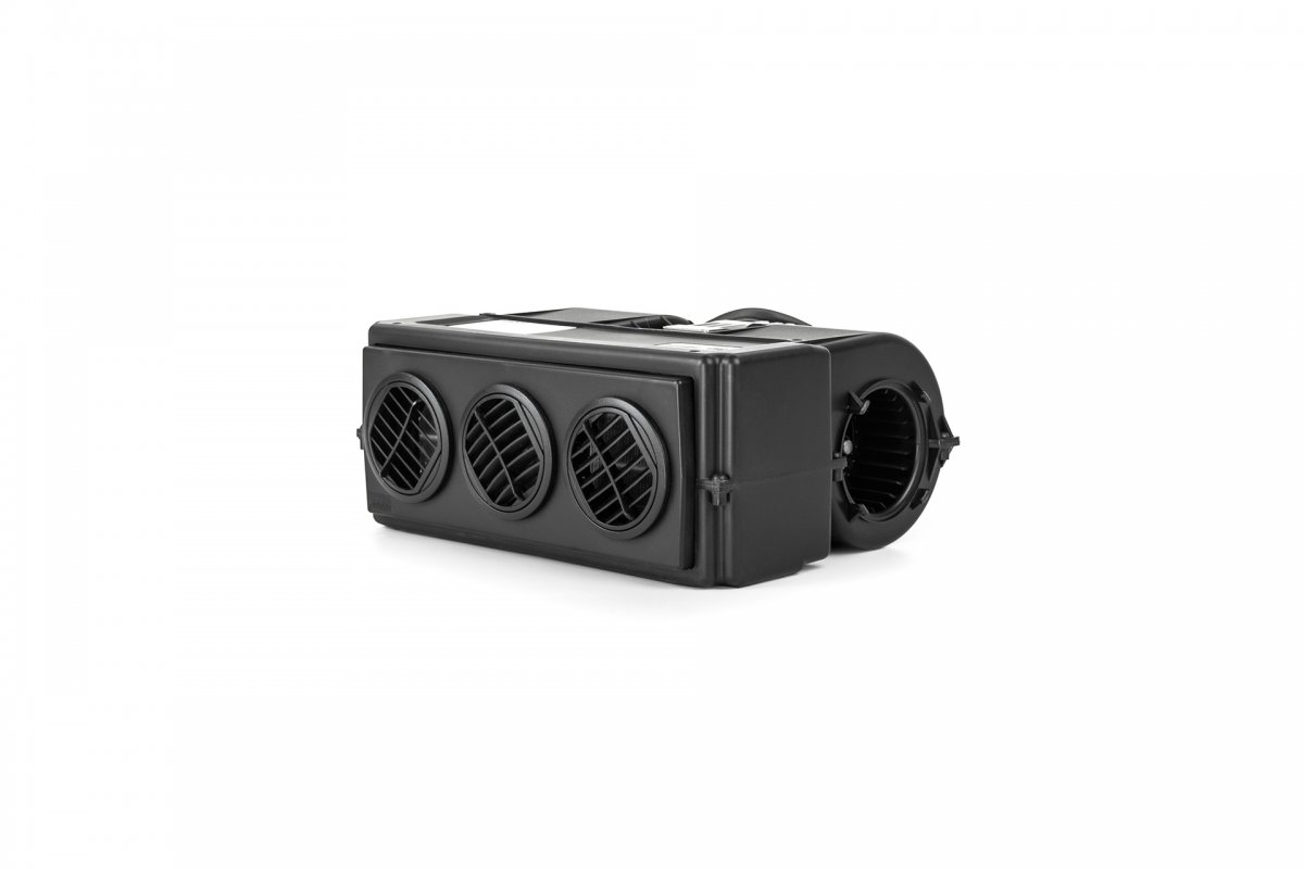 It is a heat exchanger that works as a radiator with an active fan that distributes hot air around the room it has been installed. As this water heat exchanger can run independently without AUTOTERM Flow series heater tuned on, it can be used to circulate air in the room. The heat exchanger has rotatable fans. As an alternative, heat exchanger can be linked with engines coolant system instead of AUTOTERM Flow series heater.